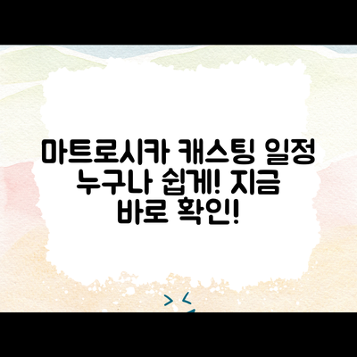 마트로시카 캐스팅 일정과 관련하여 다양한 정보를 제공받는 방법에 대해 알아보겠습니다.