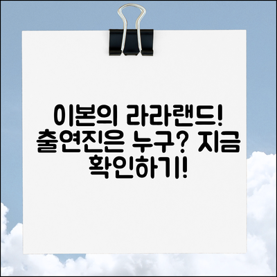 이본의 라라랜드에 출연하는 배우들에 대해 궁금하지 않으신가요? 이 프로그램에서 어떤 익숙한 얼굴과 새로운 인물이 만나는지 이야기해 보려고 해요.